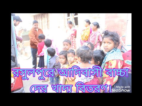 রসুল পুরে আদিবাসী বাচ্চাদের খাদ্য বিতরণ।
